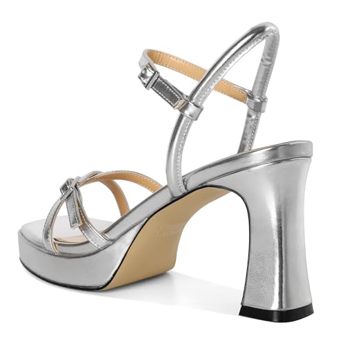 SAMMITOP Platform Heels for Women High Block Chunky Heeled Sandals Open Square Toe Cross Strappy Heels Fashion Wedding Party Dress Shoes 3.5 Inch 4