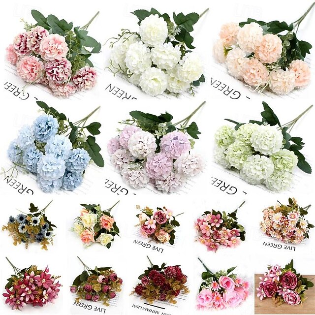HOT ! 2 Pcs Simulated Rose Artificial Ball Chrysanthemum Home Decoration Artificial Flower Ornaments Wedding Shooting Props Artificial Flowers