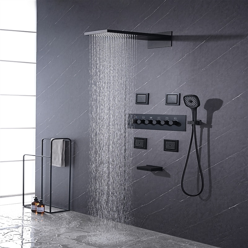 $1295.99 - Shower Faucet,Rainfall Shower System 5-Function Thermostatic Mixer valve Body Jet Massage Set Rainfall Shower Multi Spray Shower Waterfall Contemporary Painted Finishes Mount Inside Brass Valve 2025. Shop for cheap Shower Faucets online? Buy at lightinthebox.com on sale today!