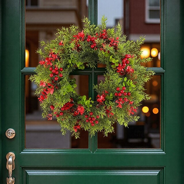 $17.49 - Christmas Wreath for Front Door, Indoor & Outdoor Decoration, Artificial Eucalyptus with Red Berries and Pine Needle Garland, Holiday Hanging Decor for Wall, Door, and Window 2025. Shop for cheap Wreaths, Garlands & Swags online? Buy at lightinthebox.com on sale today!