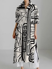 Highlights - Perfect for all seasons: Spring, Summer, and Fall - Crafted from high-quality and comfortable polyester fabric - Designed for women to wear daily - Features a stylish Shirt Dress and Casual Dress design - Available in trendy geometric and color block patterns - Adorned with chic buttons and vibrant prints - Finished with a classic shirt collar neckline - Offers a flattering Midi Dress length option