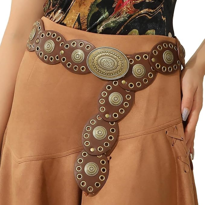 • [Western Belt Design]: This Wide Hollow Disc Leather Belt features vintage cowboy western style design elements, giving it a classic yet stylish feel. Easy to match, perfect for dresses, skirts,sweaters, down jackets or other clothes for all occasion in the four seasons