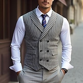 More information about Men's Waistcoat Cocktail Attire Wedding Guest Casual Vintage Spring Fall Double Breasted Polyester Adjustable Striped Slim Fit Light Grey Dark Gray Vest