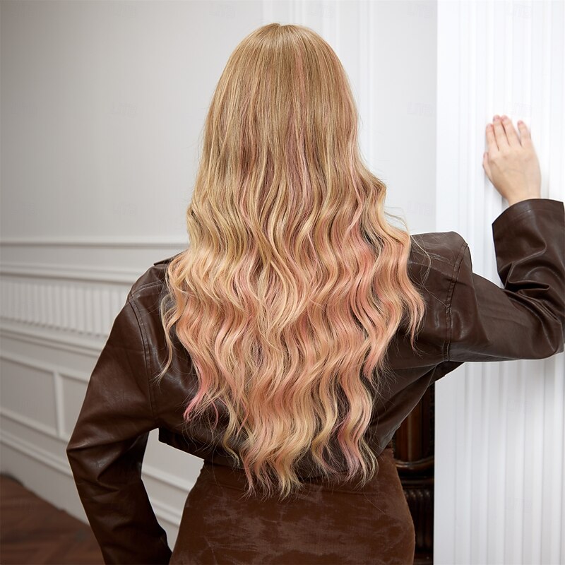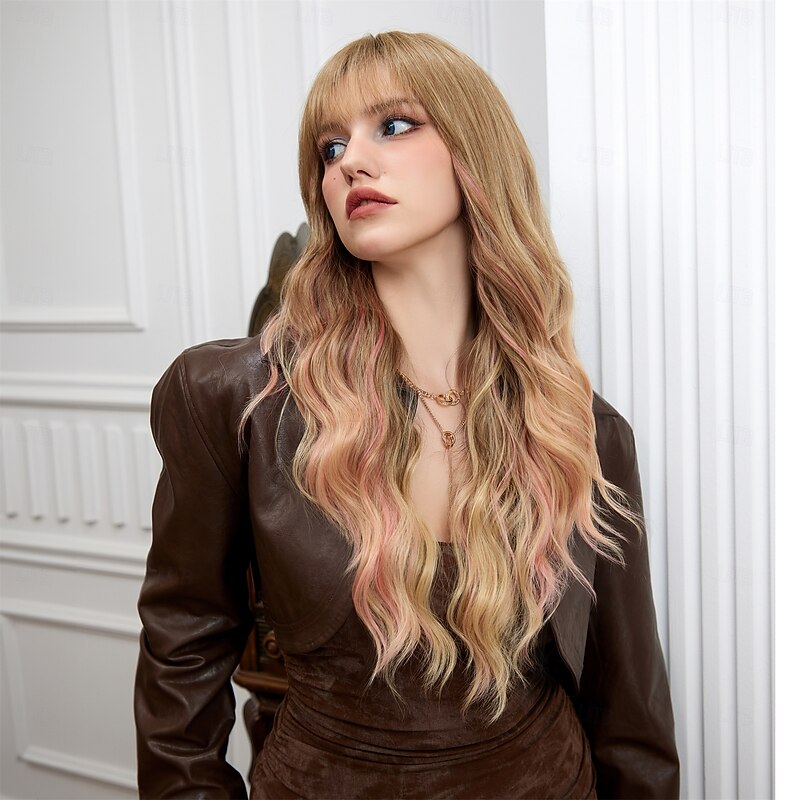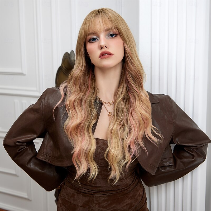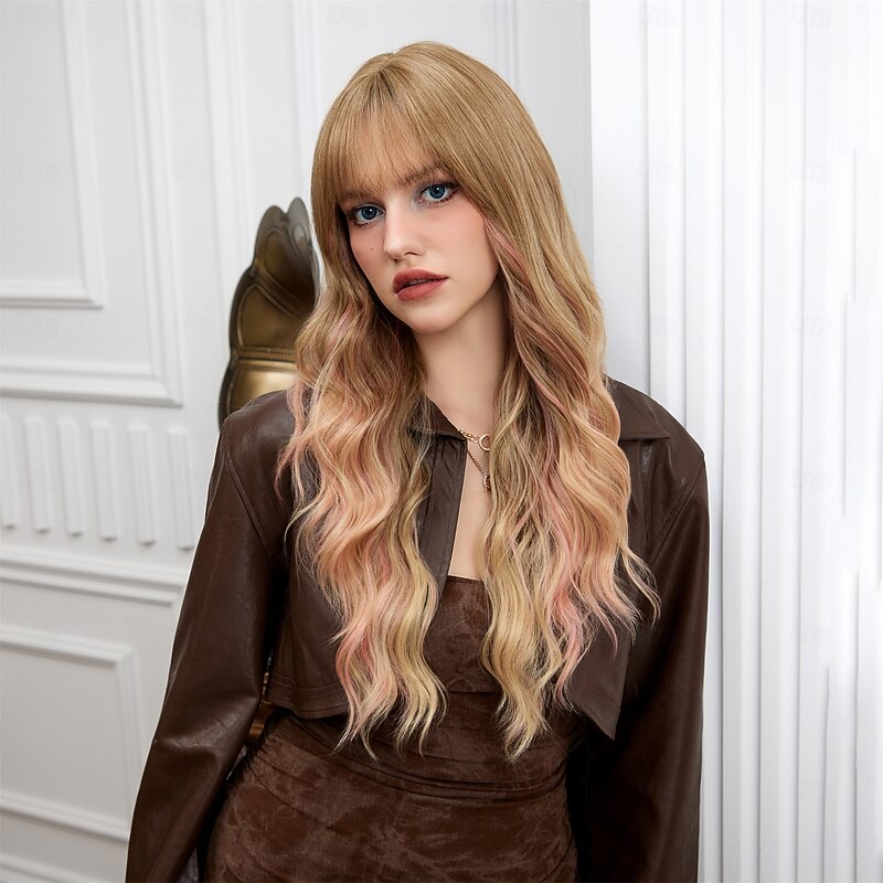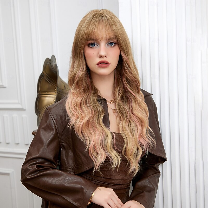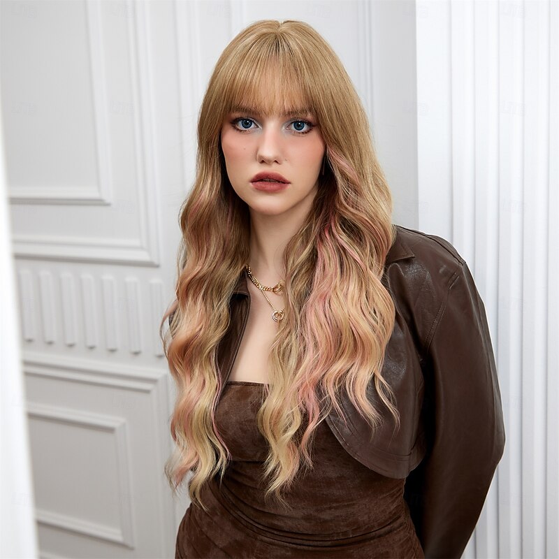 $27.99 - Synthetic Wig Curly Wavy Neat Bang With Bangs Machine Made Wig 26 inch Gold Pink Synthetic Hair Women's Cute Cosplay Party Blonde 2025. Shop for cheap Synthetic Trendy Wigs online? Buy at lightinthebox.com on sale today!