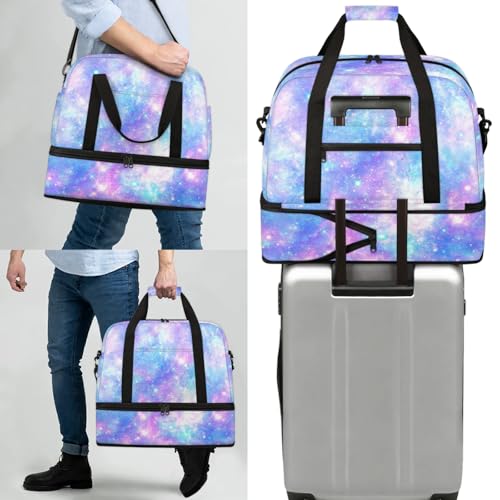 Large Weekender Overnight Bags Galaxy Colorful Abstract Travel Duffel Bag for Women Men Gym Bag With Shoe Compartment Foldie Travel Tote Bag Carry On Personal Item Bag for Travel Gym Sports 4