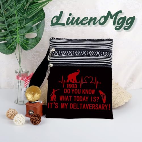 HOT ! Black Red Sorority Deltaversary Messenger Bag Small Ethnic Pattern Adjustable Strap Crossbody Zipper Pouch Sorority Phone Organizer Wallet Cute Shoulder Handbag for Women Friends