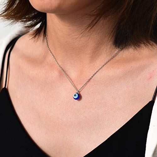 HOT ! PPJew Evil Eye Necklace Chain Blue Eyes Amulet Pendant Necklace Ojo Turco Kabbalah Protection Adjustable Delicate Jewelry Gift for Women(Silver/Gold)