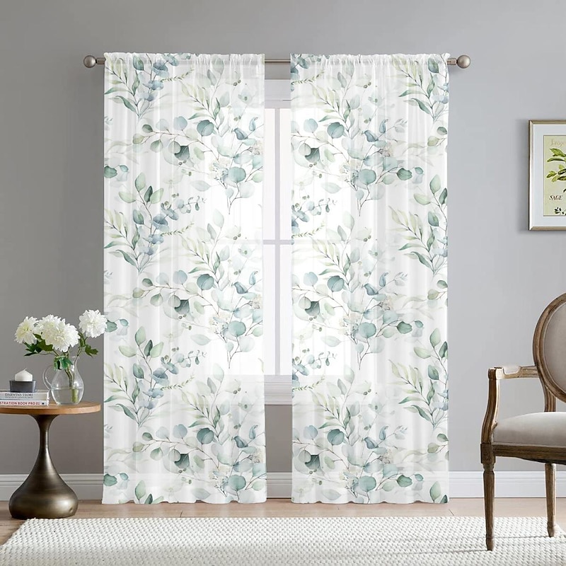 $43.99 - Green Eucalyptus Leaves Sheer Curtains Rod Pocket Drapes For Living Room Bedroom, Chiffon Farmhouse Curtain for Kitchen Balcony Door Window Treatments Room Darkening 2025. Shop for cheap Sheer Curtains online? Buy at lightinthebox.com on sale today!