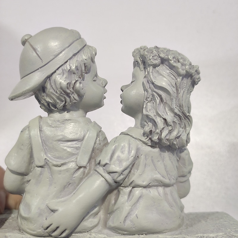 First Kiss Resin Garden Statue Puppy Love Little Girl and Boy Kissing Yard Miniature Figurine Garden Decoration 7