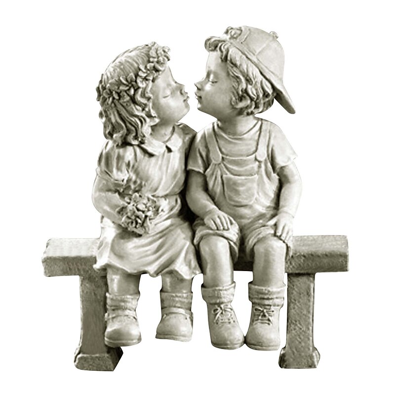 HOT ! First Kiss Resin Garden Statue Puppy Love Little Girl and Boy Kissing Yard Miniature Figurine Garden Decoration