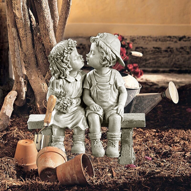 First Kiss Resin Garden Statue Puppy Love Little Girl and Boy Kissing Yard Miniature Figurine Garden Decoration 9