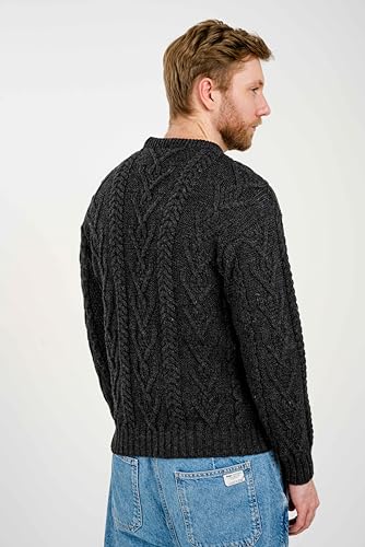 SAOL 100% Merino Wool Men's Irish Traditional Aran Crew Neck Cable Knit Sweater Pullover (Charcoal, XXXLarge) 5