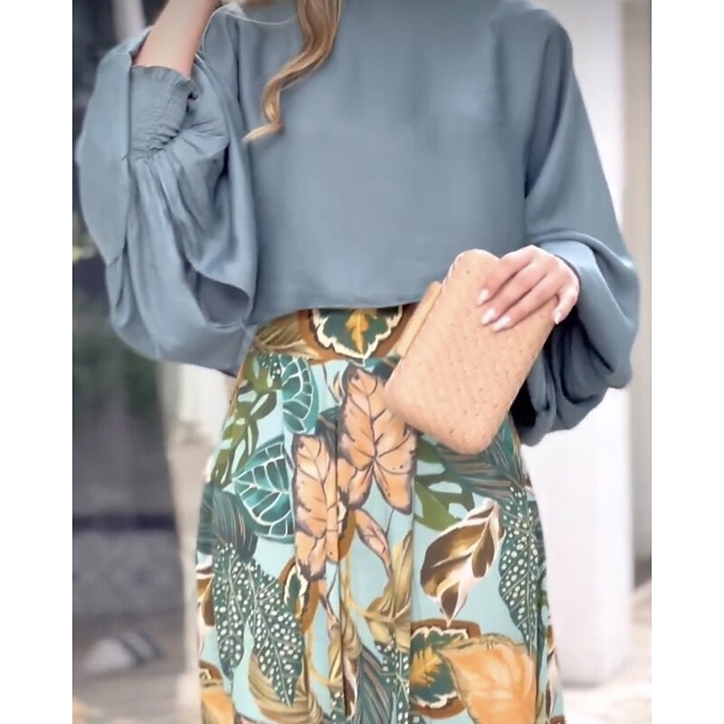 More information about Women's Active Fashion Blouse Pants Sets Long Sleeve Crew Neck Floral Print Date Going out Navy Blue Blue Orange Summer Regular Fit