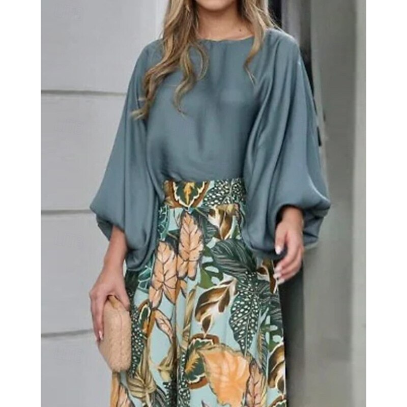 Highlights - Stylish blouse and pants set - Trendy print design - Flattering crew neckline