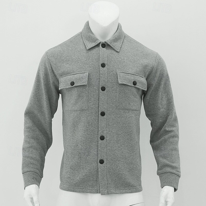 More information about Men's Shirt Jacket Transition Jacket Daily Lightweight Pocket Summer Spring Plain Casual Lapel Light Grey Army Green Jacket