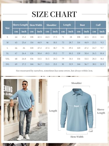 • 【Feature】:The mens classic long sleeve polo shirt is button-closure with casual regular fit, delicate front pocket, sunglasses loop design, spread collar, make these men's polo shirts more classy, no pilling and no wrinkling for your ready-to-go daily outfit