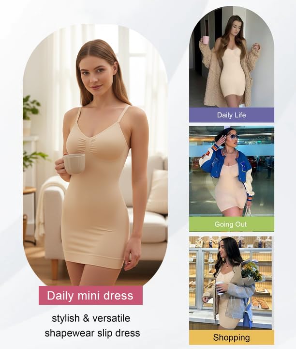 • Multiple Occasions: This tummy control dress is perfect for any event. Seamless, lightweight, and stretchy, it fits discreetly under your daily outfits. Wear it as a mini dress beneath cocktail dresses, sheer styles, or formal gowns, or pair it effortlessly with cardigans, denim jackets, or long coats. Whether attending a Christmas party, going on a date, or shopping, this dress keeps you looking chic and confident.