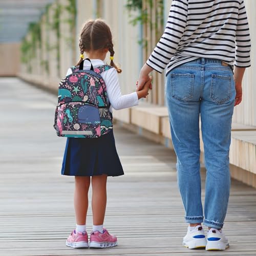 Toddler Backpack lightweight Preschool Sturdy Kindergarten Book Bag Chest Clip Daycare Bag for Travel, Toys Print Underwater Killer Whale Sea Turtle Shark Seaweed 5