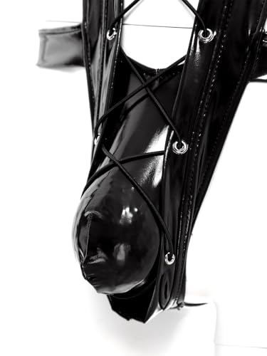 • Patent leather lingerie jumpsuit for men, sleeveless, backless, butt flaunting bodysuit with bulge pouch