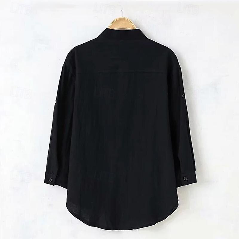 Men's Shirt Linen Shirt Chinese Collar Shirt Mandarin Collar Shirt Casual Shirt Cotton Shirt Plain Vacation Hawaiian Black White Army Green 3/4 Length Sleeve Band Collar Spring &  Fall Clothing 2