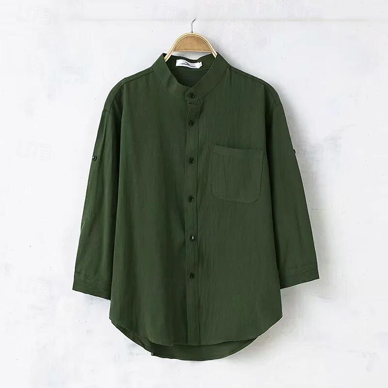 More information about Men's Shirt Linen Shirt Chinese Collar Shirt Mandarin Collar Shirt Casual Shirt Cotton Shirt Plain Vacation Hawaiian Black White Army Green 3/4 Length Sleeve Band Collar Spring & Fall Clothing