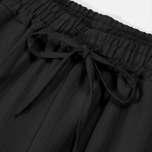Work Pants for Men Drawstring Elastic Waist Loose Casual Beach Trouser Wide Leg Lightweight Solid Pant with Pocket 5