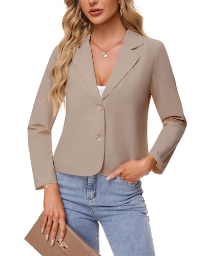 MINTLIMIT Womens Linen Blazers Casual Summer Long Sleeve Button Front Blazer Classic Lapel Collar Work Office Cardigan Suit Jacket,Khaki,S 1