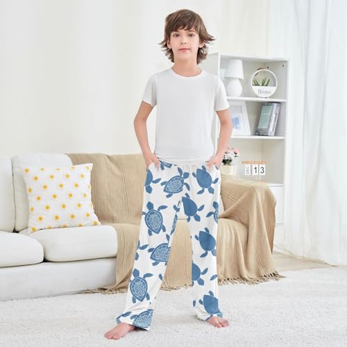 HOT ! Boys' Pants Doodle Sea Blue Silhouette Long Bottoms Jogger Pants Elastic Waist Trousers with Pockets S-XL