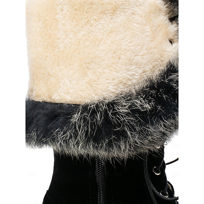 Women's Faux Suede Knee-High Lace-Up Boots with Faux Fur Cuffs – Stylish Winter Footwear with Chunky Sole 14