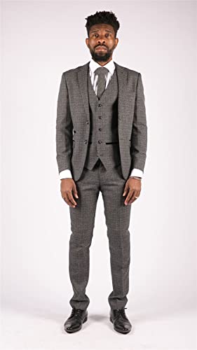Mens 3 Piece Suit Tweed Check Vintage Retro Tailored Fit 1920s 1