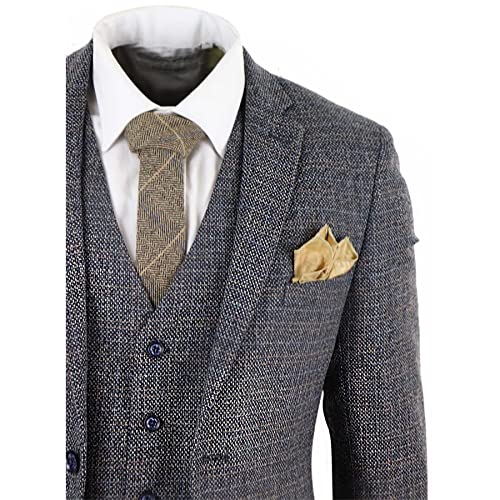 Mens 3 Piece Suit Tweed Check Vintage Retro Tailored Fit 1920s 3