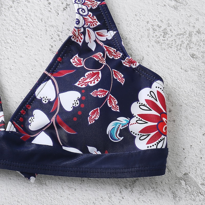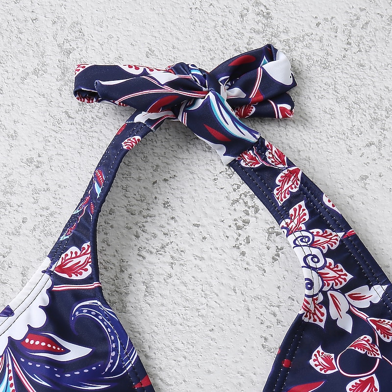 More information about Women's Swimsuits Bikini 2 Piece Cheeky Swimsuit Halter 2 Piece Open Back Sexy Tropical Sexy Floral V Wire Sleeveless Bathing Suits