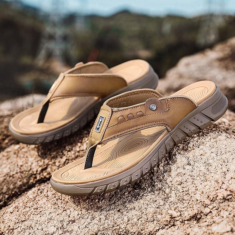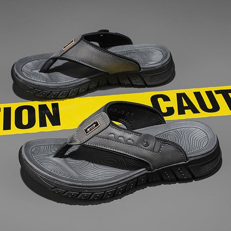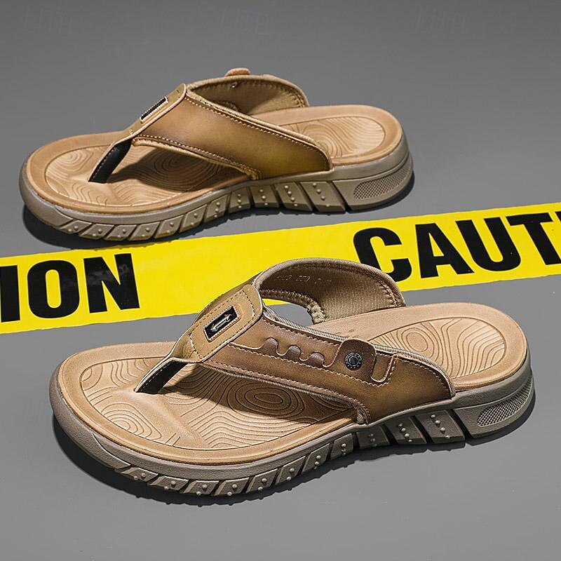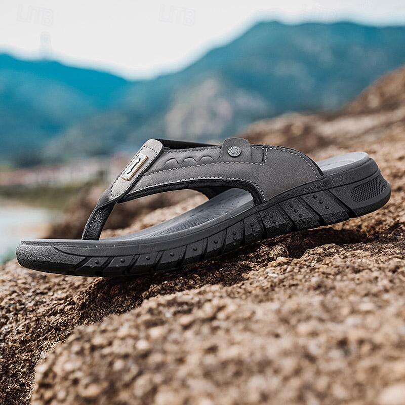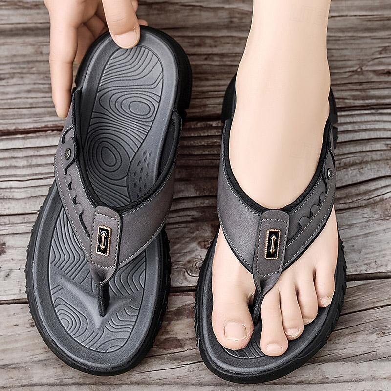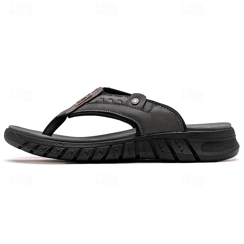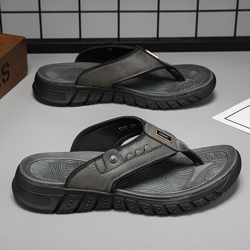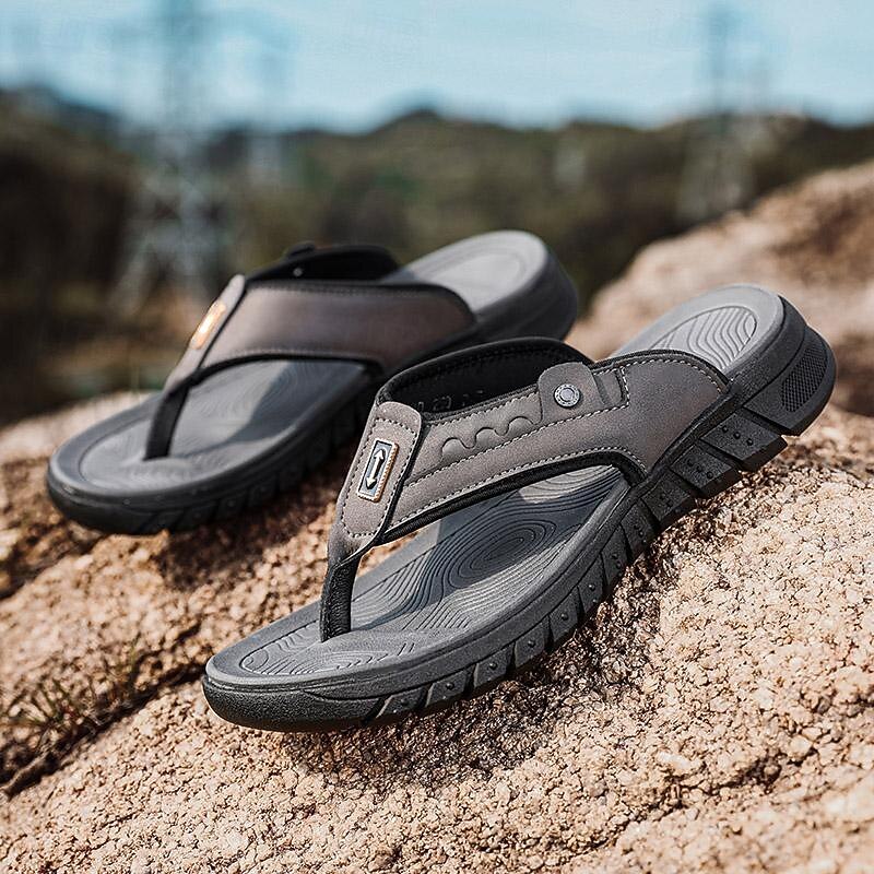 Highlights [Fabric & Material] These men's sandals are crafted with high-quality leather uppers, providing a refined and durable finish that is easy to maintain. The outsole is made from robust rubber, offering excellent grip and slip resistance. [Fit & Style] Featuring an ergonomically contoured footbed, these sandals deliver superior support and cushioning for prolonged wear. The casual style is complemented by a thong-style strap with an adjustable buckle, ensuring a custom fit for various foot shapes. [Design Highlights] The sandals boast a splicing embellishment and a classic round toe shape, merging retro aesthetics with modern functionality. The simple, solid-colored design makes them versatile for different outfits. [Occasions & Usage] Perfect for summer days, these sandals are ideal for vacation getaways, daily wear, beach outings, and leisurely walks. They combine practicality with stylish aesthetics, making them suitable for a range of casual occasions. [Size Range & Suggestions] Available in a size range from US6 to US10, these sandals adhere to standard sizing, making it easy for you to select your usual size with confidence.