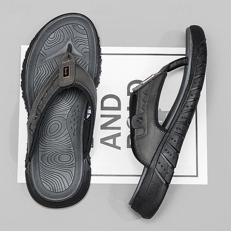 Men's Leather Sandals Summer Sandals Slippers & Flip-Flops Retro Walking Casual Daily Vacation Beach Comfortable Shoes Dark Grey Dark Brown 24