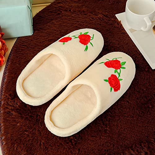 CsgrFagr Women's New Rose Embroidered Soft Soled Indoor Non Slip Cotton Slippers Clog Slippers for Women Outdoor (Beige, 7.5) 6