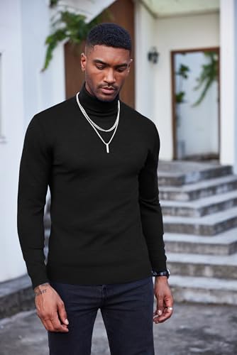 COOFANDY Men's Slim Fit Turtleneck Sweater Casual Basic Knitted Long Sleeve Pullover Sweater 1
