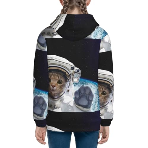 Cat Astronaut Kids Pullover Hoodies Boys Zip Up Sweatshirts Girls Athletic Clothes with Pocket 4