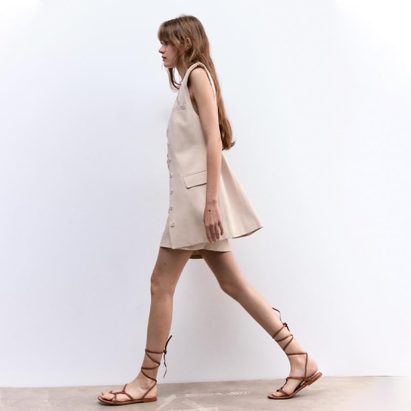 • 【TRENDY AND CHIC DESIGN】–female gladiator lace-up sandals use a unique staggered strap design to show personality and fashion sense. The open-toed style is comfortable and breathable, suitable for daily wear in summer or beach travel