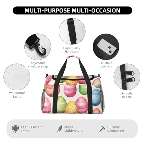 HOT ! Easter Eggs Duffle Bag for Travel Colorful Sports Gym Tote Carry On Bag Large Shoulder Weekend Overnight for Workout