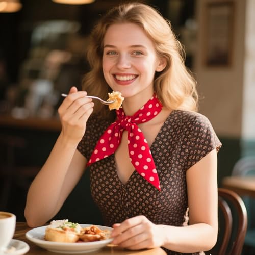 Chiffon Scarf, Red Vintage Dot Scarf for Women Red Bandana Scarfs Lightweight Neckerchief Elegant Bandana Hair Ties Headscarf for Handbags Purse Headscarf Handkerchief (19.7 Inch) 4
