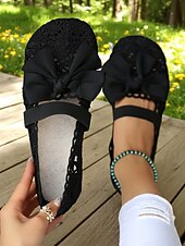 More information about Women's Wide Width Crochet Lace Flats with Bow – Lightweight Romantic Style for Garden Dates, Summer Picnics and Casual Outdoor Events