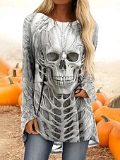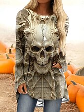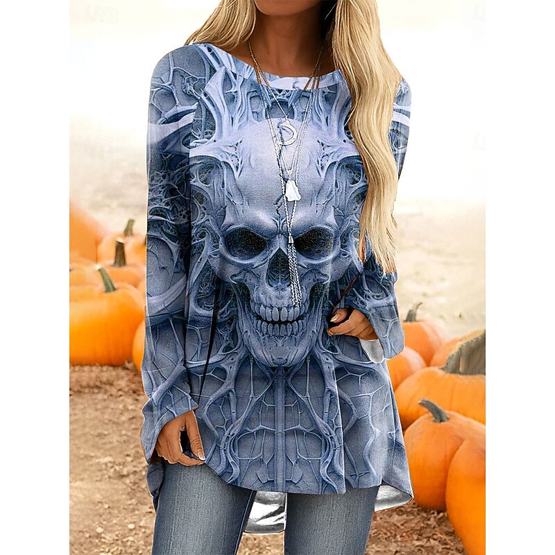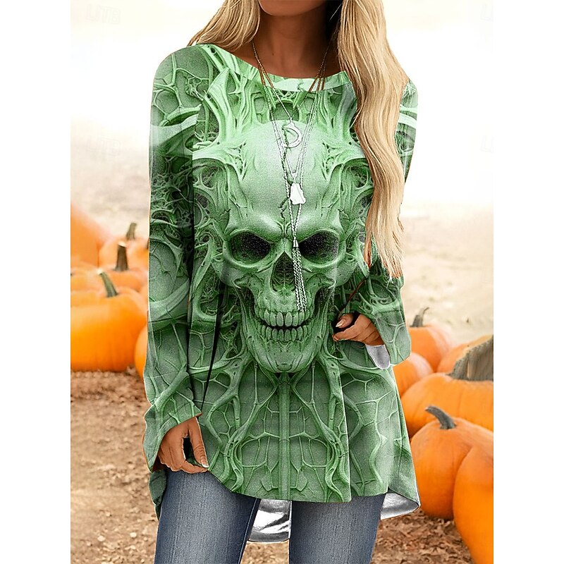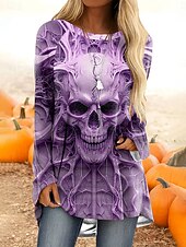 More information about Halloween Women's T Shirt Skulls Graphic Vintage Stylish Classic Long Sleeve Crew Neck Long Tops Daily Print White Blue Purple Green Khaki Spring Fall
