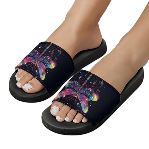Glowing Colorful Dragonfly Funny House Sandals Non Slip Shower Slippers Quick Drying Bathroom Shoes for Women Men 6