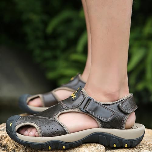Men's Sport Outdoor Hiking Sandals, Leather Closed Toe Athletic Sport Casual Beach Water Sandals,Lightweight Comfortable Waterproof 7