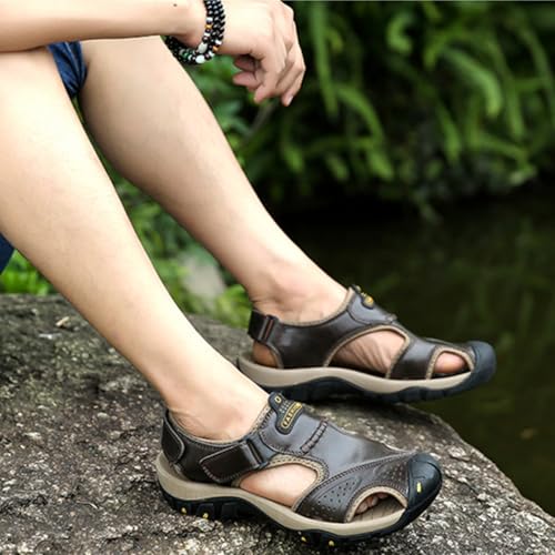 Men's Sport Outdoor Hiking Sandals, Leather Closed Toe Athletic Sport Casual Beach Water Sandals,Lightweight Comfortable Waterproof 5