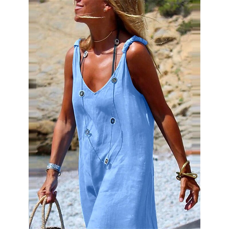 Women's Normal Dungarees Overall Streetwear Solid Color Sleeveless V Neck Street Daily Regular Fit Black Navy Blue Light Blue Summer 7