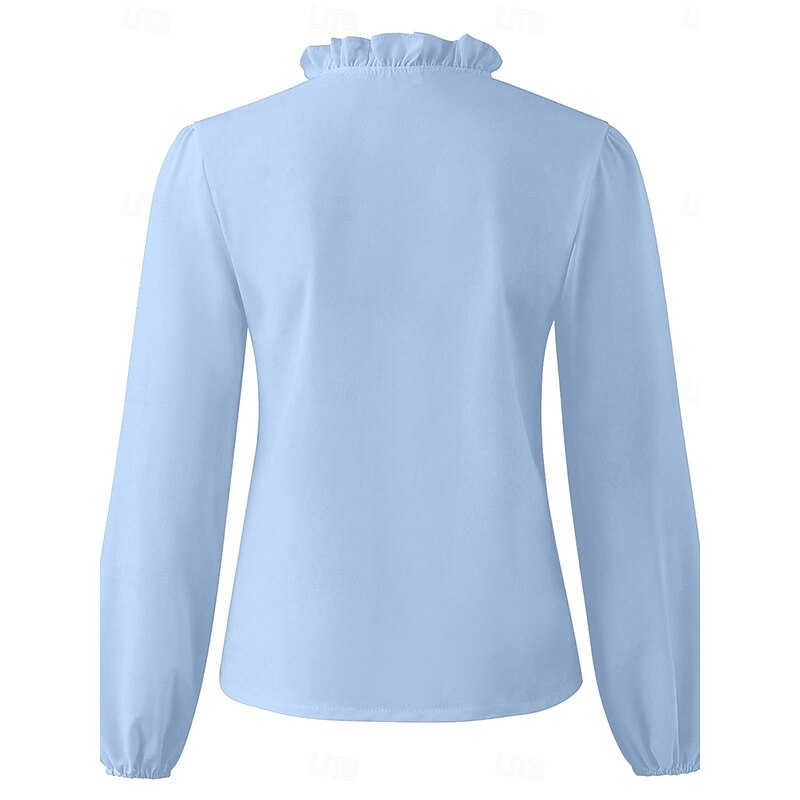 Women's Shirt Blouse Solid Color Basic Casual Long Sleeve V Neck Regular Tops Daily Ruffle White Blue Fall Winter 7