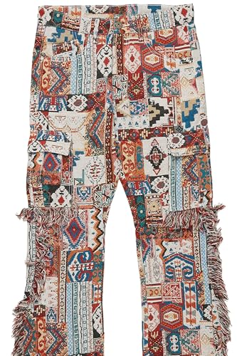 HOT ! Men's Percy Multi Tapestry Slim Flare Jean
