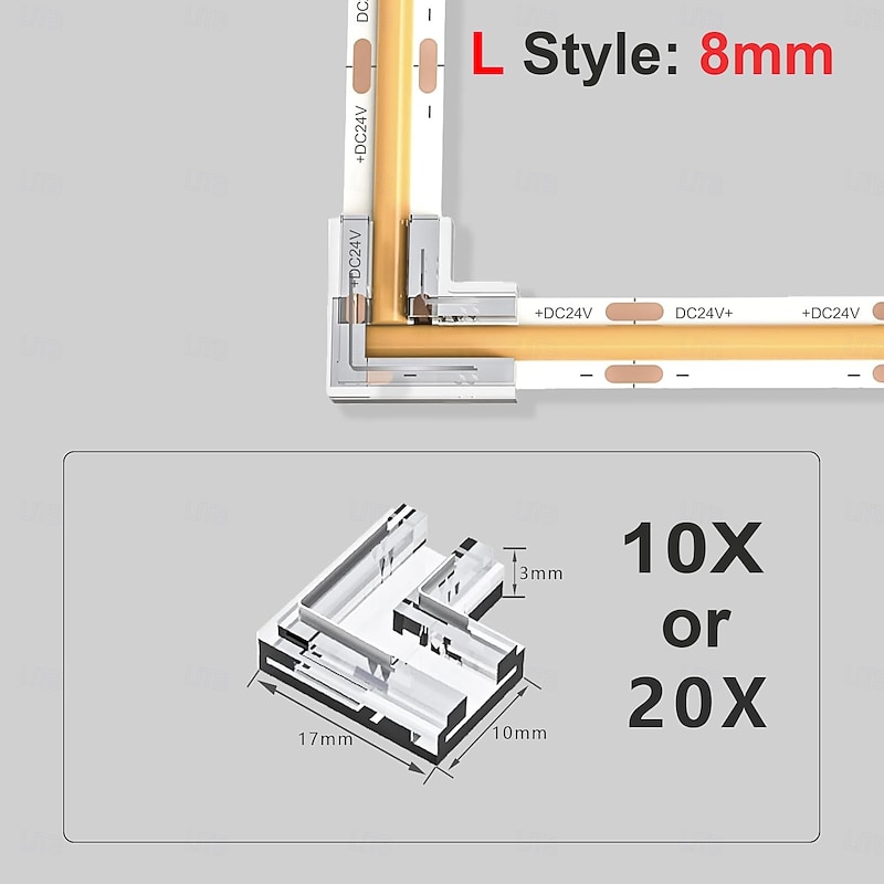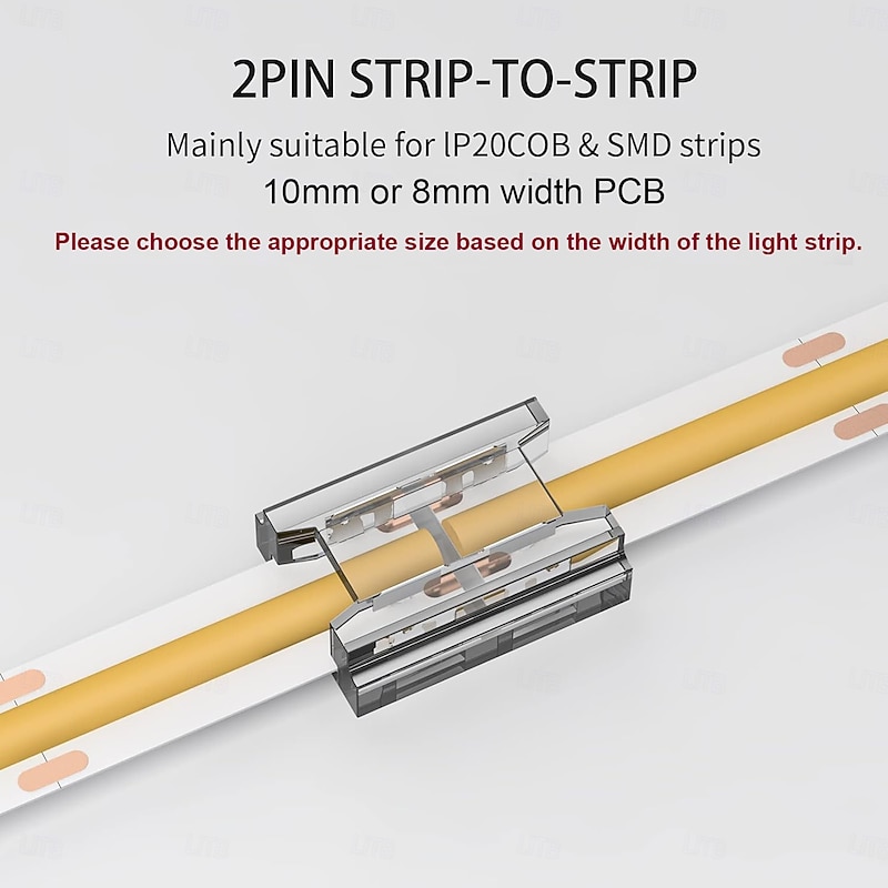 $9.99 - COB LED Strip Connectors 8mm 10mm 2 Pin COB LED Strip Connectors 10PCS 20PCS I-Shaped L-Shaped Board to Board Corner Connectors Transparent and Gapless LED Tape Light Connectors Suitable for DIY COB 2025. Shop for cheap LED Accessories online? Buy at lightinthebox.com on sale today!