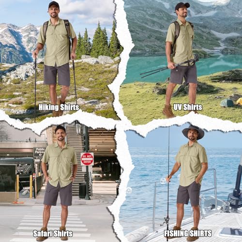 linlon Safari Shirt Men Short Sleeve UPF 50 UV Sun Protection Quick Dry Hiking Fishing Shirts 6